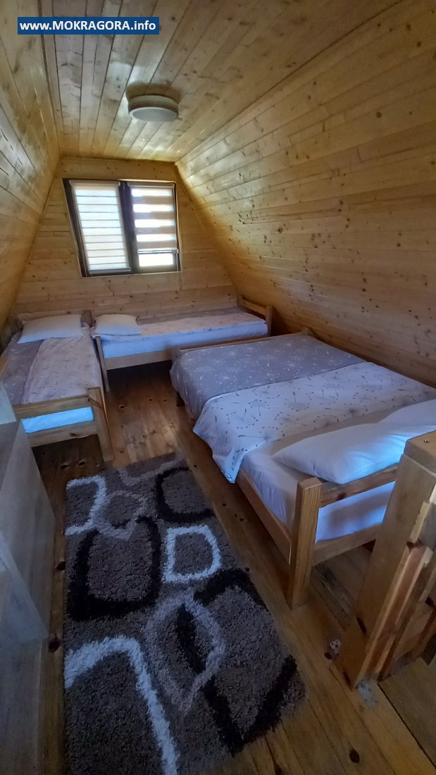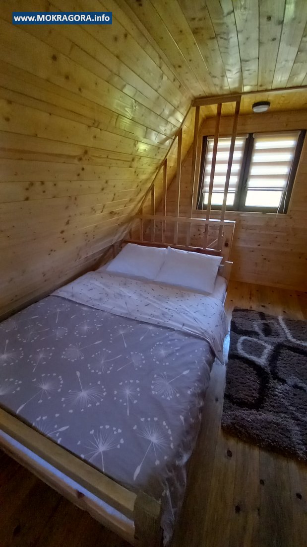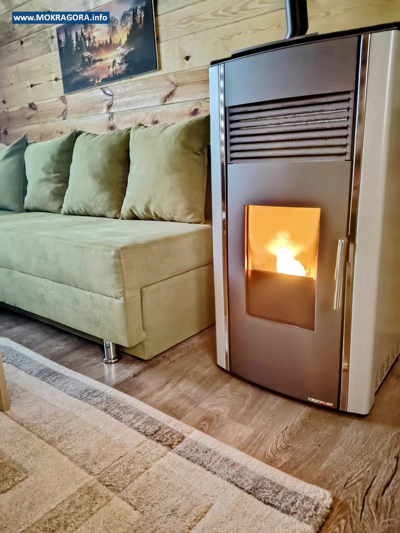 1 bračnim + 2 singl kreveta. Grejanje je na peć na pelet, a gostima su dostupni Wi-Fi internet